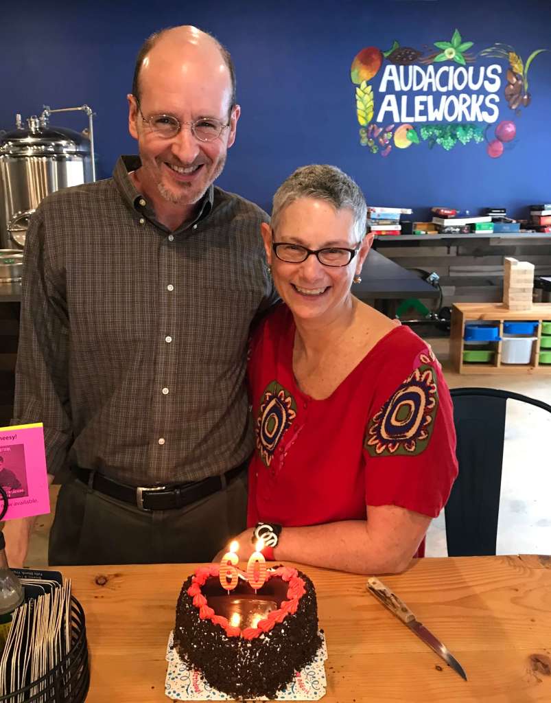 May 10, 2019 — Do memories of yesterday count as delights for today? I think so. A lovely memory lingers this morning from Kevin’s delightful surprise last night. We started my birthday celebration at our local family-friendly brewery, Audacious Aleworks, with a beautiful chocolate heart-shaped ice cream cake Kevin had purchased for me. His idea: share slices with the customers. We did. Smiles, best wishes and sweetness ensued. I’m still warmed by it all this morning.