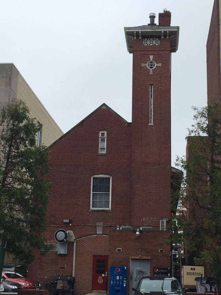 June 13, 2019: I walked through a plaza at George Washington University this morning. While “Moon River” chimed rather incongruously from somewhere nearby, I caught a back-alley view I’d never seen before: a narrow brick tower affixed to a squat brick building. A church? The source of the chimes? Neither: it was the back of a 19th century firehouse. I squeezed past the gas grill and the chief’s car to circle frontward. Yes, a firehouse, nicely ornamented. The four-story tower, invisible from the front, afforded a majestic view of DC’s Foggy Bottom and beyond. I imagine the lookout shouting a century ago: Fire! There! Let’s get going.