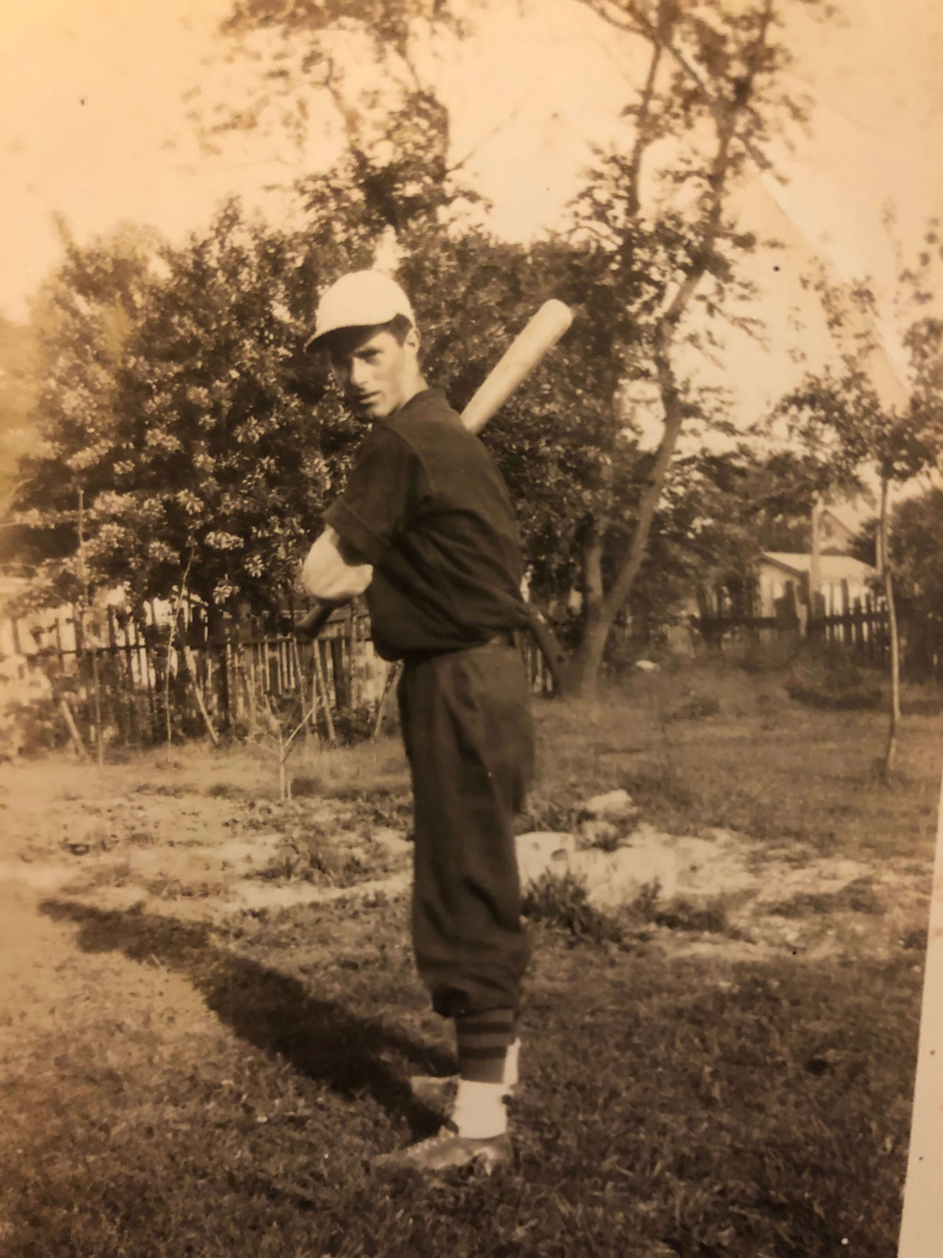 April 11: My cousin reached out to my sister, who reached out to me. A family in Monmouth County, New Jersey, is doing research on a local semi-pro baseball team from the 1930s called the Wolverines. Apparently, the men on the team resolved, after they went overseas to fight in World War II, to correspond in a sweet form of chain letter. One player would write a paragraph to start the letter and mail it the second player, who would add his paragraph and mail it to the third. And so forth, all the way around the horn (to use baseball lingo). Each letter would, over months, circle the globe and be touched by many hands, like a ball in play. Two of my uncles were on the Wolverines and were stationed in Europe. My Dad, also a Wolverine, served in the South Pacific. I eagerly await the results of the family’s research.