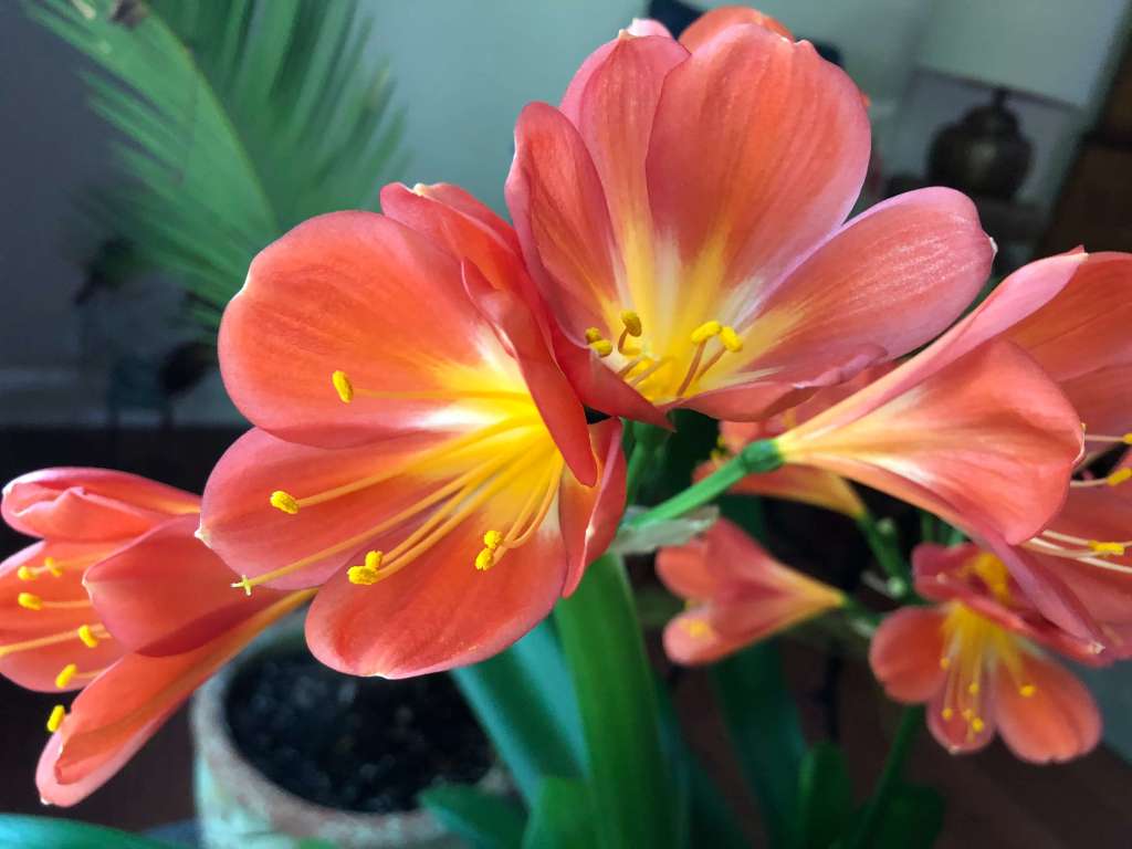May 11: Despite its thick glossy leaves and tropical lushness, I’d neglected a houseplant in a distant room. I found it today canopied in extravagant orange blossoms, with more already decorating the floor. May I be as gracious and forgiving as that beautiful plant.