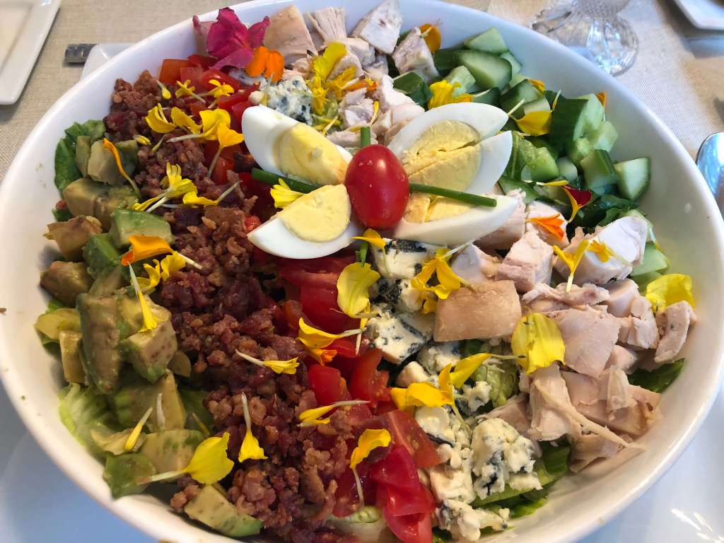 October 9: I sneaked a bite of the chocolate cake I’d brought home yesterday for Kevin. After savoring that magnificent barn, my friend Lee and I popped in for lunch at the house of our friends Steve and Lisa. We had expected jolly conversation and a light salad. Instead, the day sparkled with extraordinary hospitality of the most inventive (and delicious) kind. Striped and colorful, the Cobb salad resembled a stand of world flags. The shimmering flutes of apple cider mimosas bubbled under a rim of cinnamon sugar. And oh, that cake, snuggled next to coconut ice cream. Our three-hour visit awed us again with incidental beauty, this time constructed with the tools of caring and kindness.
