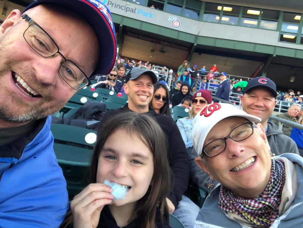At the game last night (once again, we sat in the third row), my niece Ella pointed to the wire holding the protective netting between our seats and the ball field. A mouse scampered along the wire 25 feet over our heads toward the Cubs dugout. Then, to the horror and delight of the fans, the mouse started moving head first down the netting, eventually scrambling across the dugout roof. An usher approached with a broom and dustpan, but the mouse scampered away. A Cubs player helpfully stuck his hand up and guided the mouse into the dustpan. To cheers (and some boos — people were really rooting for the mouse) the usher carried the mouse away.