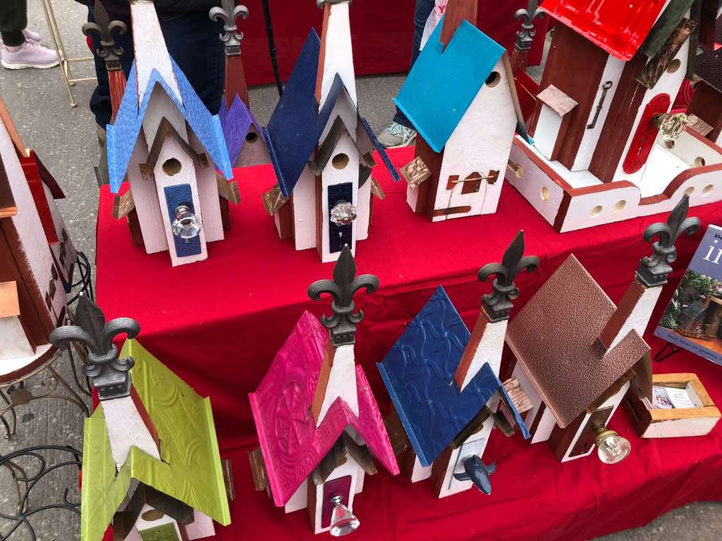 Then Susan and I stopped to chat with an elderly man and his daughter who were selling handmade bird and butterfly houses. These miniature whimseys were trimmed with ornamental doorknobs, Victorian hinges, and roof tin discarded from the Iowa State Capitol. I recognized the craftsman’s Italian accent: strange, because almost no Italians emigrated to the United States between 1924 (when the doors to Eastern and Southern European immigrants slammed shut) and 1965 (when they opened again).