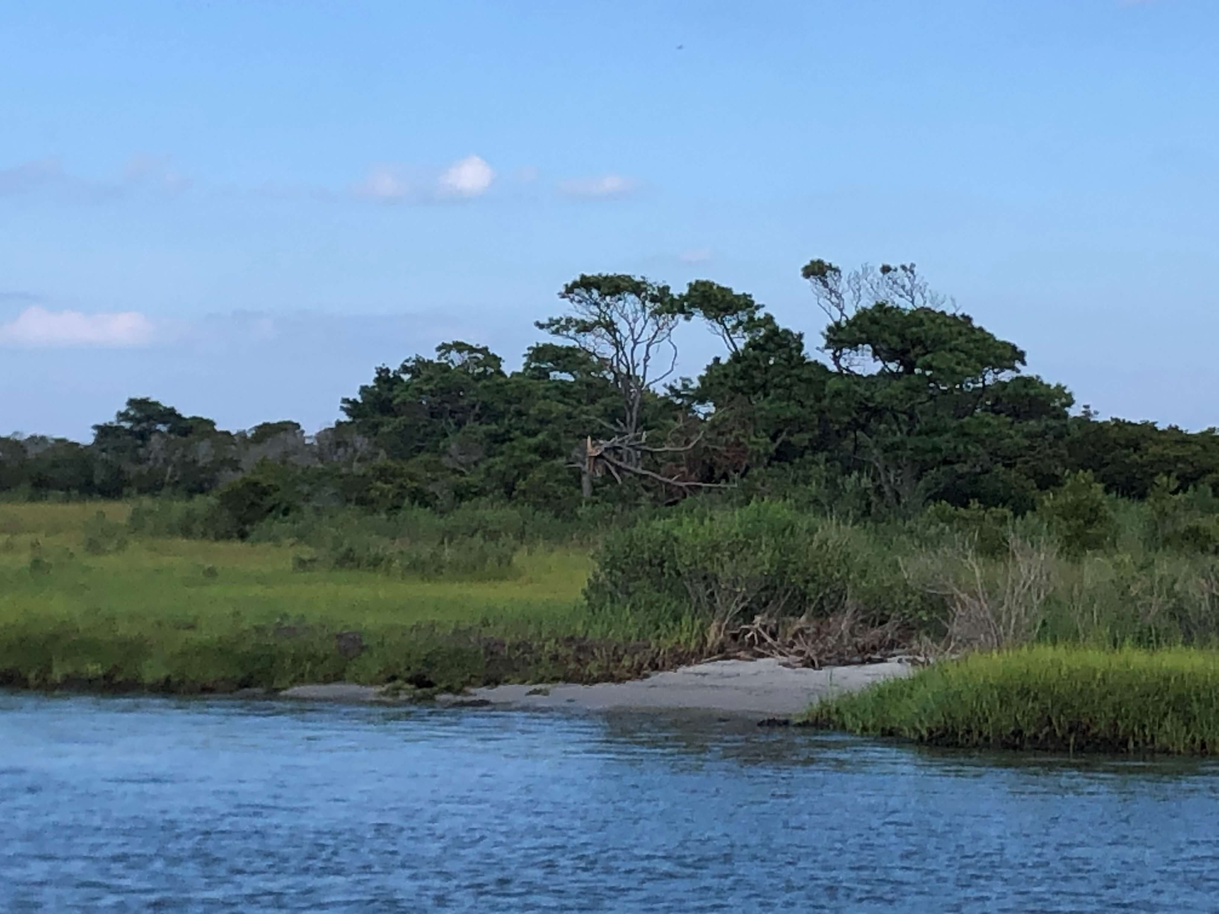 August 1: When we walk to Sinepuxent Bay from our house, we see the finger-wide bay nestled between piney marshland and grassy sand dunes. When we drive to Assateague Island, we cross the bay as it burbles over clam beds and the ankles of wild ponies. When we sip drinks along the marina, we see a fingertip of the bay tickle the fishing boats and restaurant piers. And when we watch the sun set from Assateague, we see the bay reflect oranges and purples from its channels and pools.