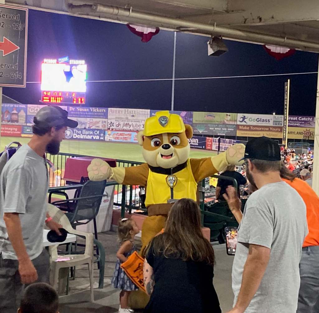 We chuckled as Rubble — a bulldog construction worker from Nickelodeon’s “Paw Patrol” cartoon — greeted pint-sized fans around the ballpark. We made “aw, adorable” sounds as I recounted to Jeremiah and his friends how I glimpsed a three-year old boy high-fiving Rubble and a three-year old girl waving sadly (“He’s leaving . . . Rubble is leaving!”) as the giant mascot moved away.