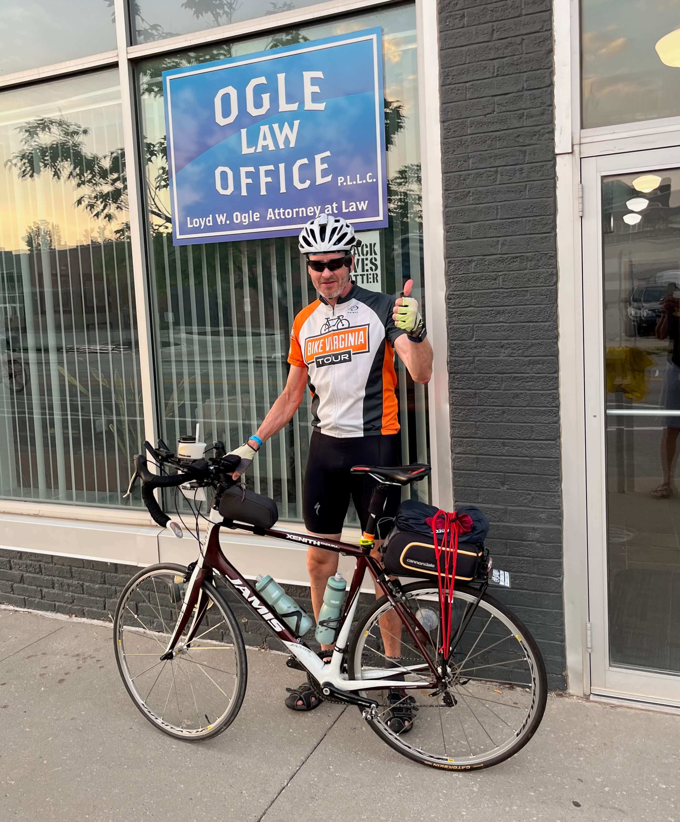 Kevin’s only mishap occurred when he heard the sinister growl of metal shredding metal. Fearing a busted wheel, Kevin pulled over. The metal strap-hook of his rear carrier had gotten tangled in the bicycle’s bladed spokes, so that the carrier’s red cord twisted through the wheel in a hobbling mess. “A mechanically minded rider pulled over and helped me solve the problem in a methodical way. And a mom hung around too.” Then Kevin paused. “Everyone on the ride was very kind.”