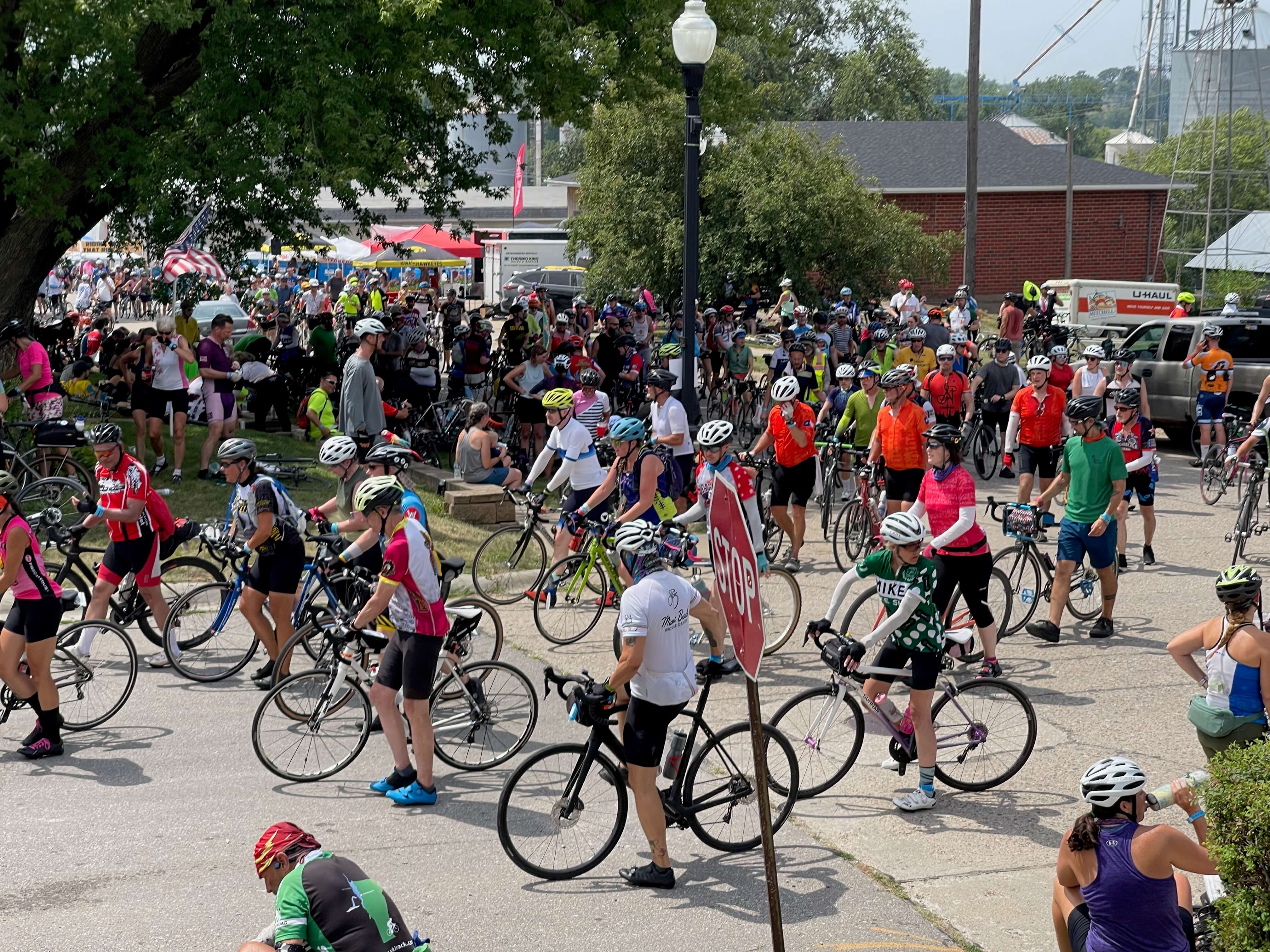 July 31: Kevin is home! The sixth longest, sixth hilliest, most crowded RAGBRAI is over. Kevin has made it back to Virginia with his camping gear, bike gear, and many stories of extreme heat, delicious food, and bike accidents (thank goodness Kevin stayed upright all 500 miles). Kevin talked about the many, many riders: cresting a hill, he could see thousands of riders before him and the thousands of riders behind. Kevin didn’t take a photo — it would have been amazing — because, he said, “I didn’t want to lose my place in the horde.”